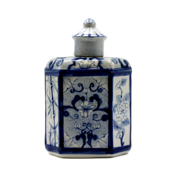 Фарфоровая китайская чайница. Роспись кобальтом. Размер 16×10 см