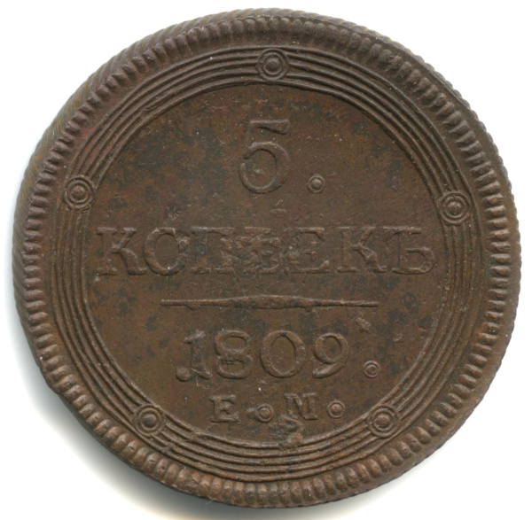 5 копеек — Кольцевик. Орел 3 типа: образца 1810 г., орел меньше. 1809 ЕМ. нечастый год (Российская Империя)