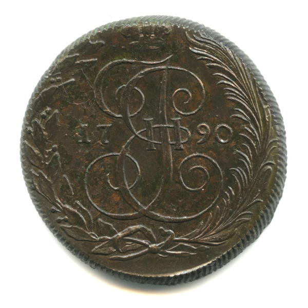 5 копеек — Вензель императрицы Екатерины II Великой. Сузун-Колыванская монета. КМ крупнее 1790 КМ (Российская Империя)