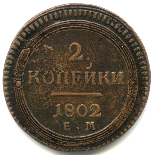 2 копейки — Кольцевик 1802 ЕМ (Российская Империя)