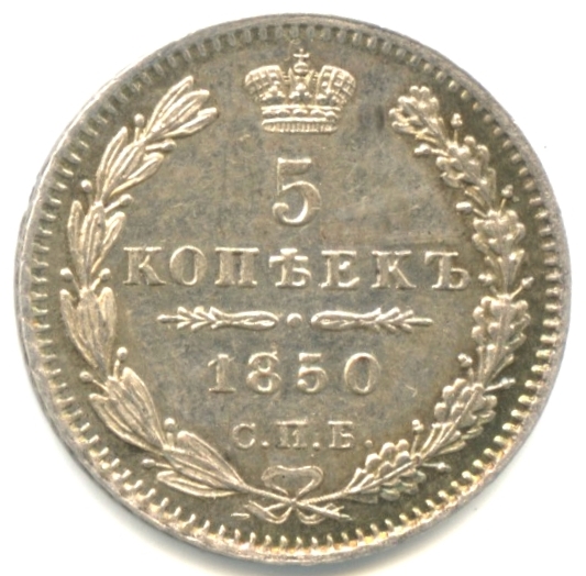 5 копеек — Орел 4 типа 1850 CПБ ПА CПБ ПА (Российская Империя)