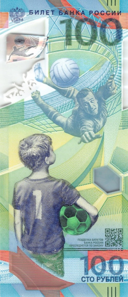 100 рублей (Pick: # 280) 2018. Банкнота С ЛИЧНЫМ РУКОПИСНЫМ АВТОГРАФОМ ВРАТАРЯ ИГОРЯ АКИНФЕЕВА. Автограф получен на Чемпионате (Россия)