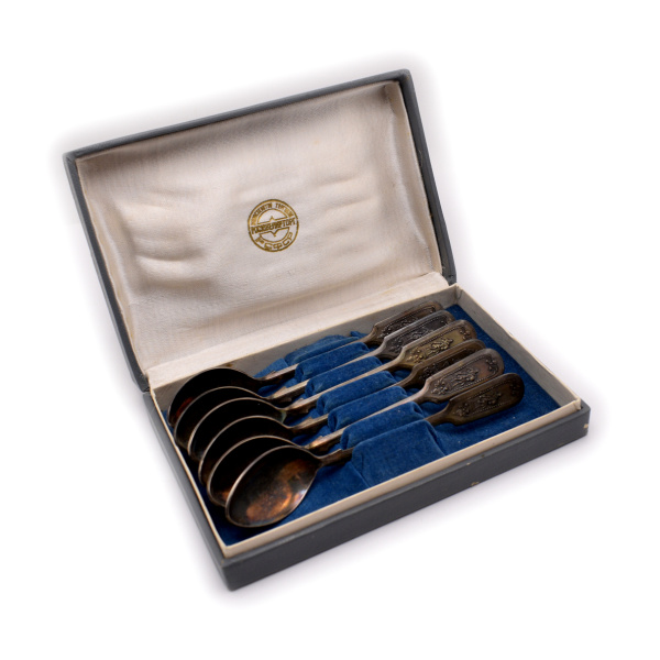 Набор из 6-ти чайных ложек. Мельхиор. Длина 14 см. Главювелирторг. В коробке. Размер 16,5×11 см. ЮМ3МЕТ1С (СССР)
