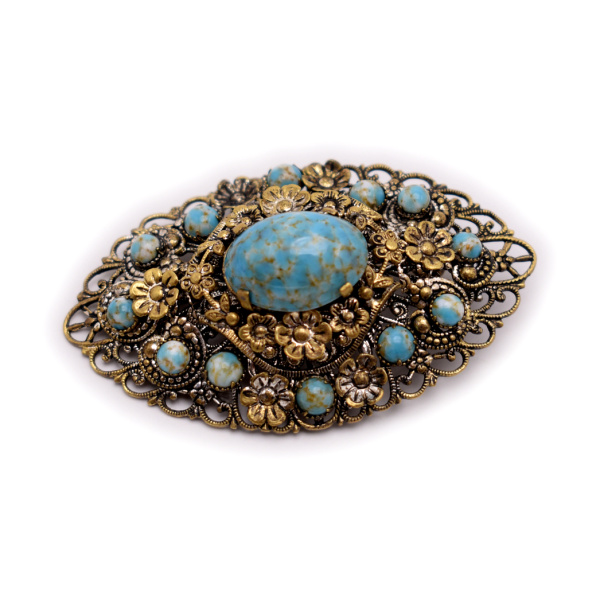 Брошь винтажная, пекиннское стекло. Вставки. Крепление: булавка. Размер 6×3,5 см (СССР)