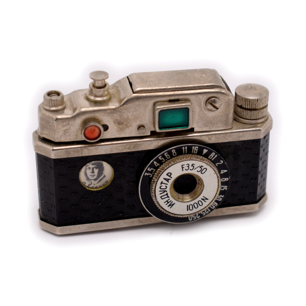 Зажигалка в виде фотоаппарата с Есениным (СССР). Размер 6,2×4 см (СССР)