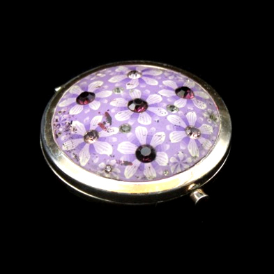 Серебряная пудреница с зеркальцем и натуральными камнями. ⌀ 6 см. 12 см в раскрытом состоянии