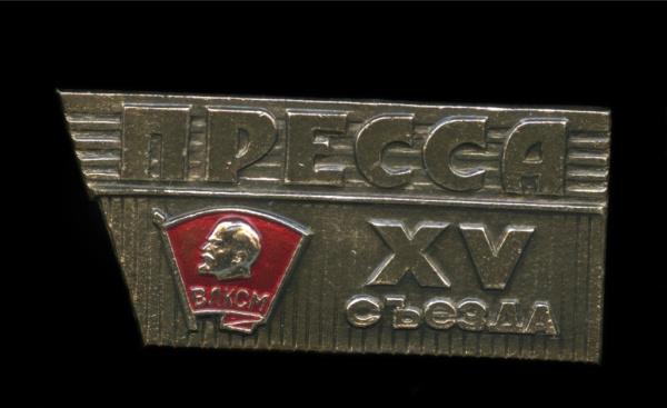 Знак служебный «XV Съезд ВЛКСМ. Пресса». Al. редкий 1966 (СССР)