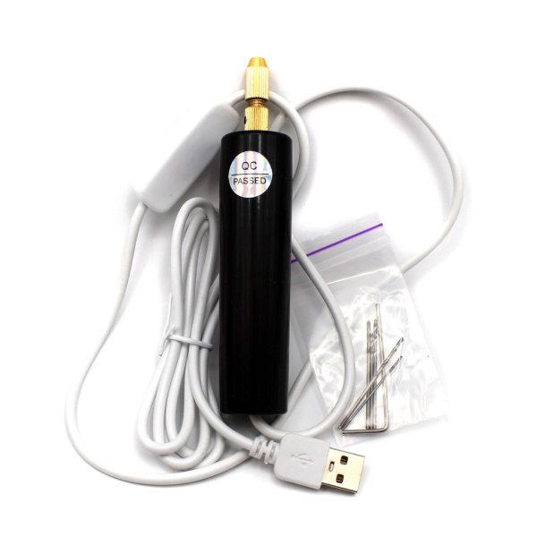 Электрическая мини-дрель с USB + сверла (5 штук). Металл, пластмасса. 12 см