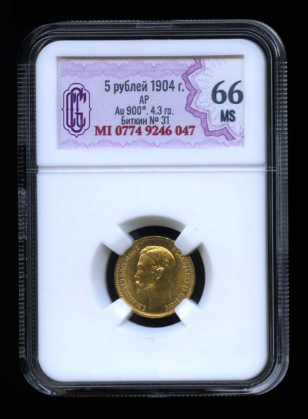 5 рублей — Портрет Николая II 1904 АР. В слабе CGC — МS 66 (Российская Империя)