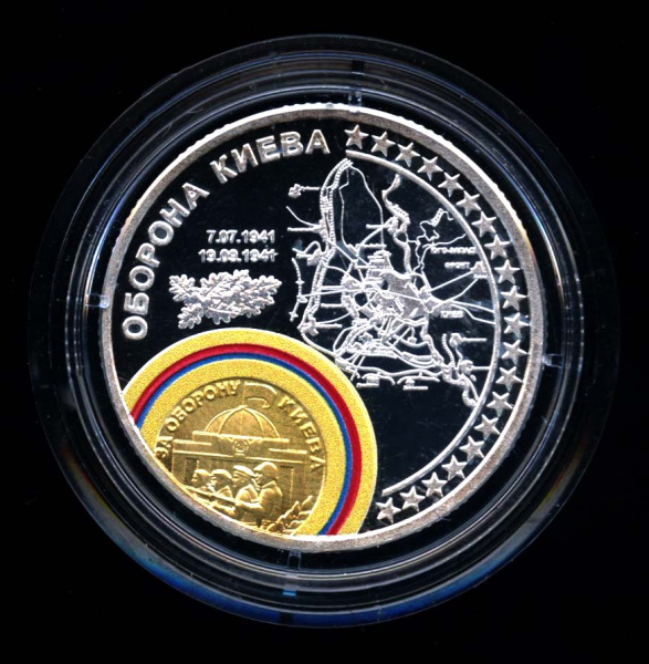 Медаль «Оборона Киева». В капсуле, с сертификатом. Произведено на заводе «Красносельский Ювелирпром.» Серебро 999 пробы (Россия)