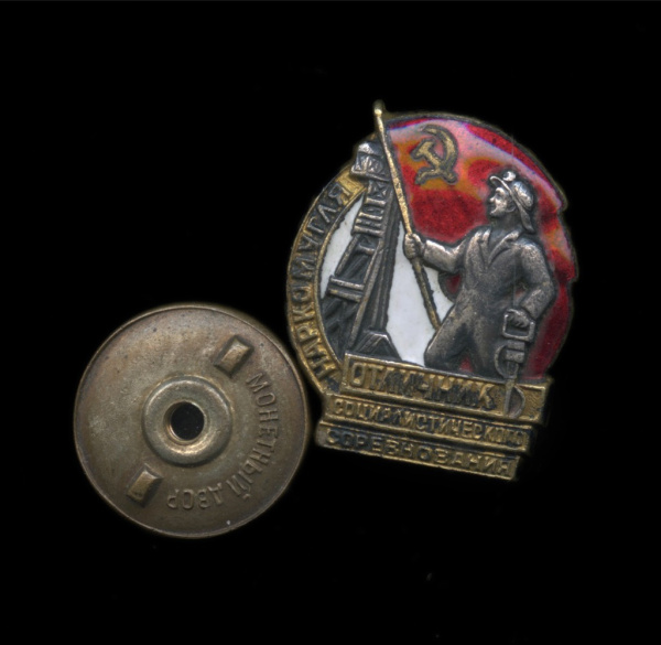 Знак «отличник социалисти Наркомугля». Крепление: винт. Тяжелый, эмаль (СССР)