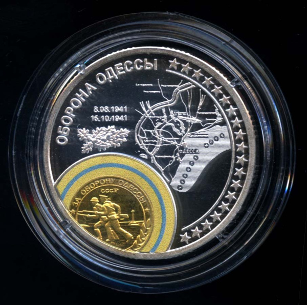 Медаль «Оборона Одессы». В капсуле, с сертификатом. Произведено на заводе «Красносельский Ювелирпром.» Серебро 999 пробы (Россия)