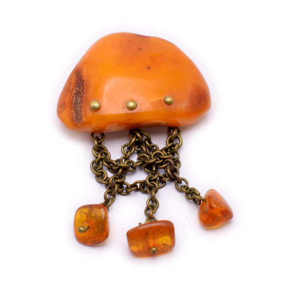 Брошь с янтарем. Размер 4×7 см. 12,68 г (СССР)