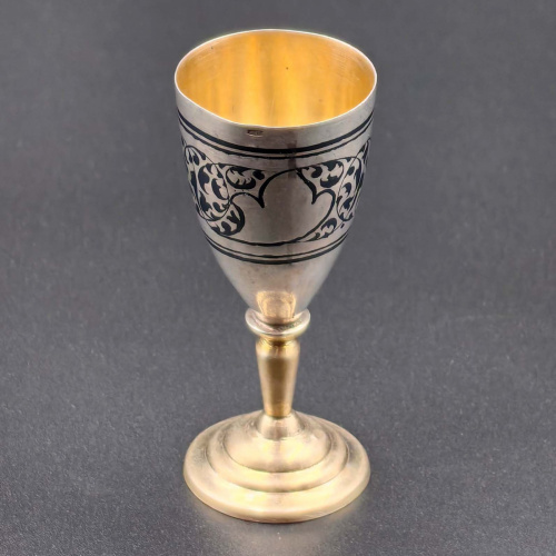 Рюмка. Высота 7,8 см., вес 34,7 гр. Клейма — 875 звезда, 4КХК — Кубачинский художественный комбинат. Гравировка, чернение. Состояние превосходное 1961…