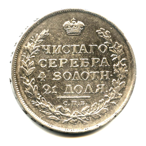1 рубль — Хвост растрепан, немного вытянут 1823 CПБ ПД. Оригинальный штемпельный блеск CПБ ПД (Российская Империя)