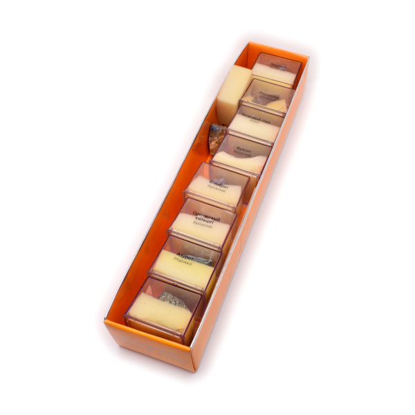Набор минералов. 9 шт. В коробке 6,5×31 см
