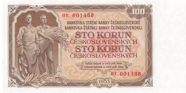 Банкнота «100 крон 1953» (Чехословакия)