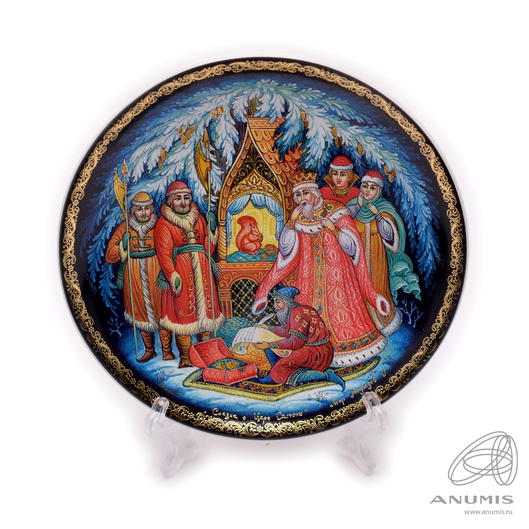 Тарелка настенная фарфоровая «Русские сказки в фарфоре, изготовлено на основе лакового оригинала. Палех». Размер 10,5×10,5 см. В упаковке