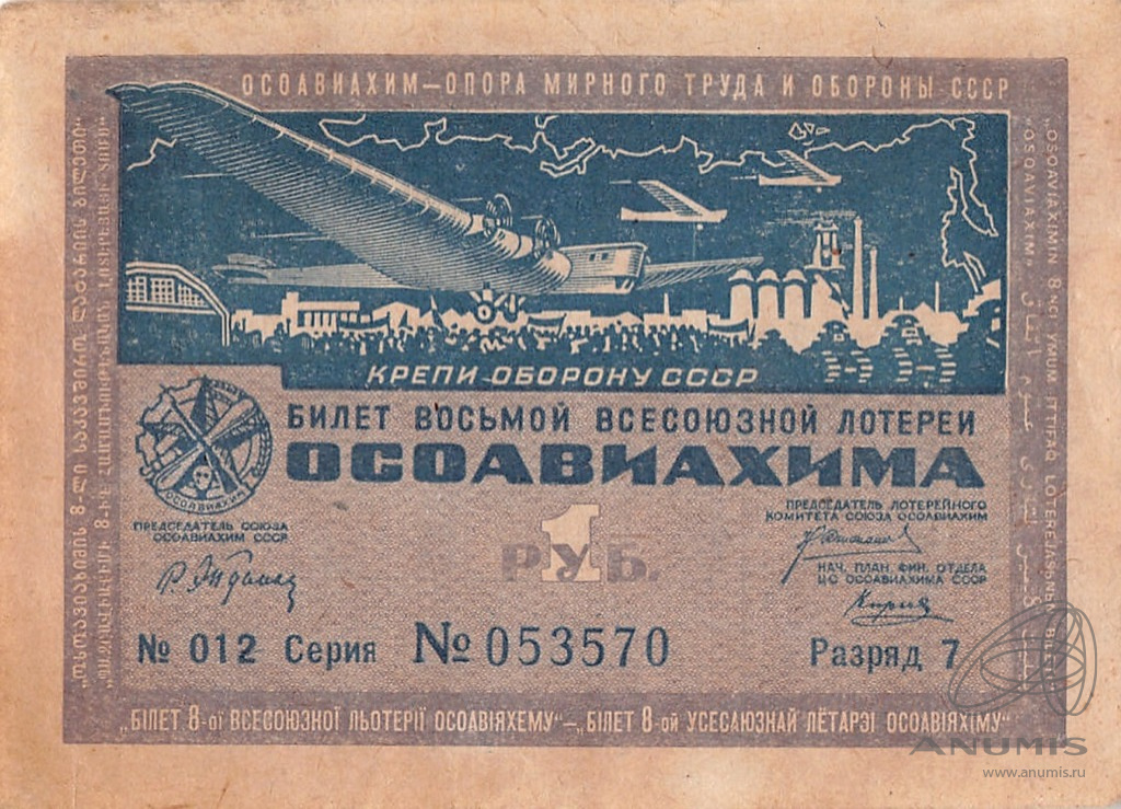 1 рубль Восьмая лотерея Осоавиахима 1933