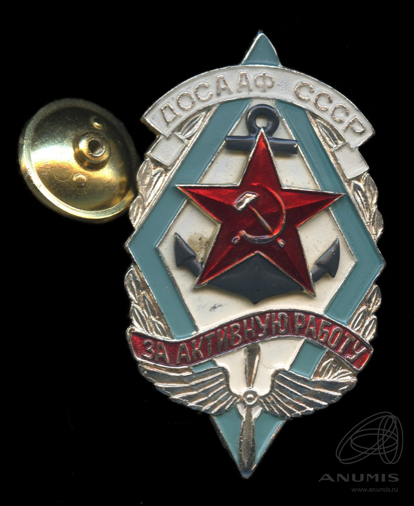 Знак «За активную работу. ДОСААФ СССР». Крепление: винт. Легкий, эмаль