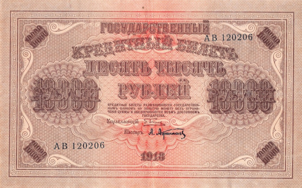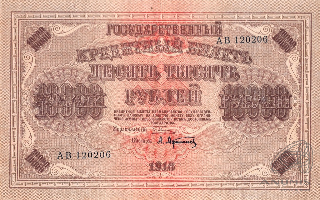 10000 рублей 1918. Кассир — Афанасьев. Коллекция Г. и Я. Абезгузов
