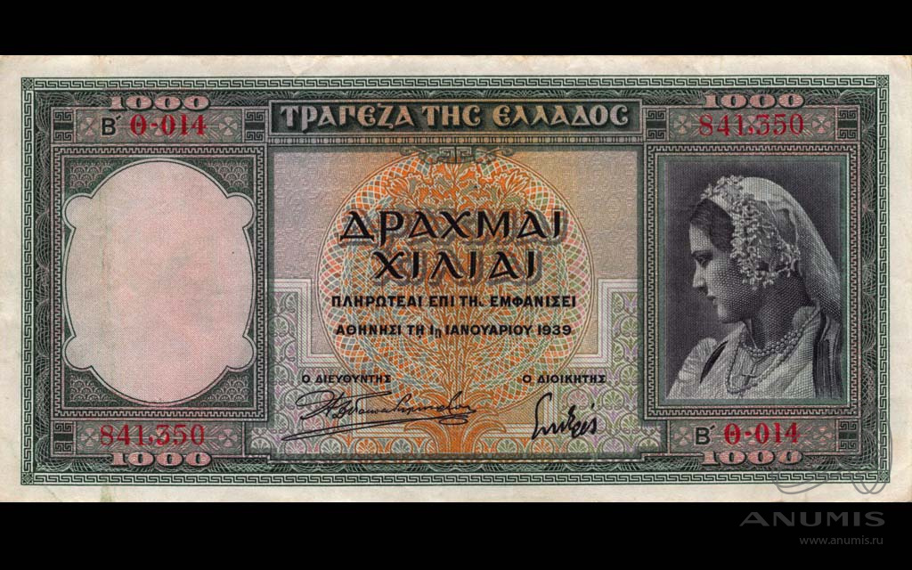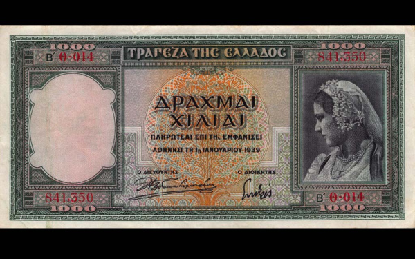 Банкнота «1000 драхм 01.01.1939» (Греция)